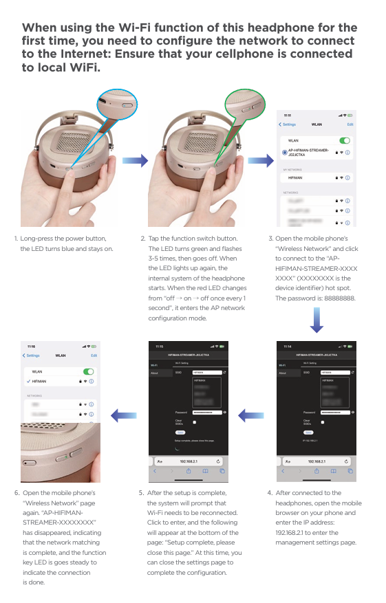 Le Bluetooth est également disponible pour une liberté de mouvement maximale. Grâce aux technologies LDAC et aptX HD, le HE1000 WiFi tire le meilleur parti de la norme et offre une alternative pratique lorsqu'aucun réseau Wi-Fi n'est disponible. Le casque peut également être connecté directement à un ordinateur, une tablette ou un smartphone via USB-C.